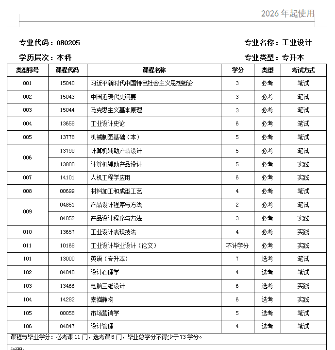 根据规定,2026年广东自考工业设计本科将以全新科目表开考,未毕业的考生均需按最新课表进行。如下是相关科目表: