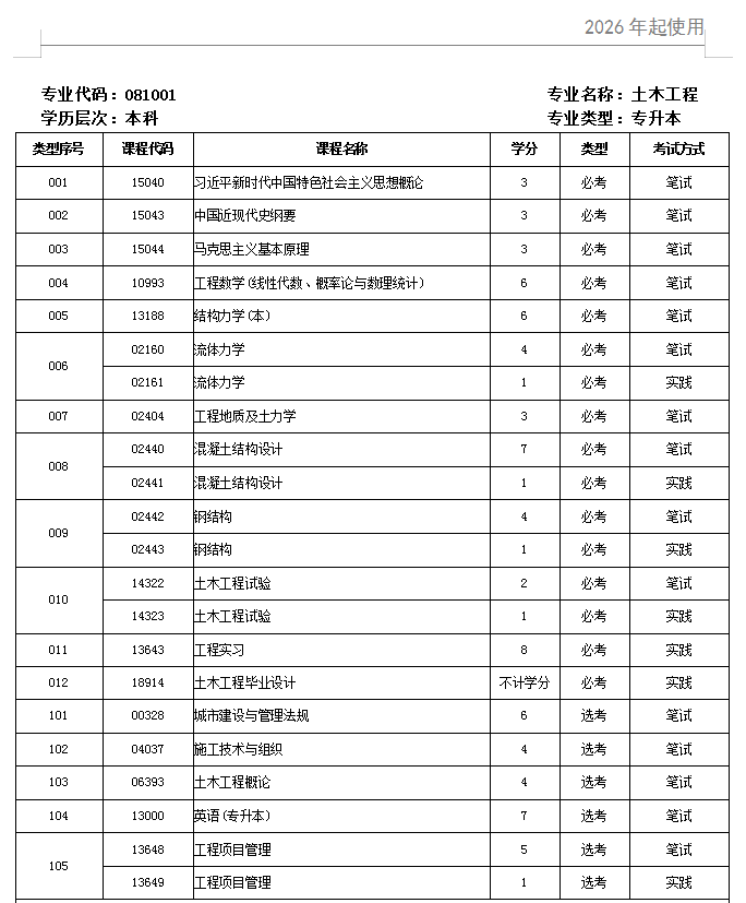 以上便是关于2026年广东自考土木工程 (本科)新课程的全部内容,希望对考生有所帮助。自考按新课表,考试难度大很多。打算报名的,建议趁早。