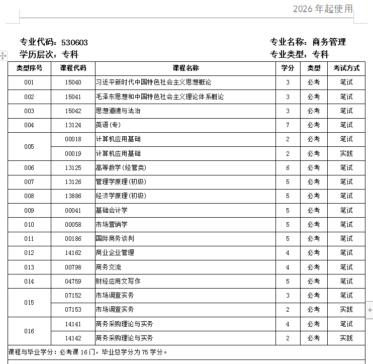 以上便是关于2026年广东自考商务管理(专科)新课程的全部内容,希望对考生有所帮助。自考按新课表,考试难度大很多。打算报名的,建议趁早。