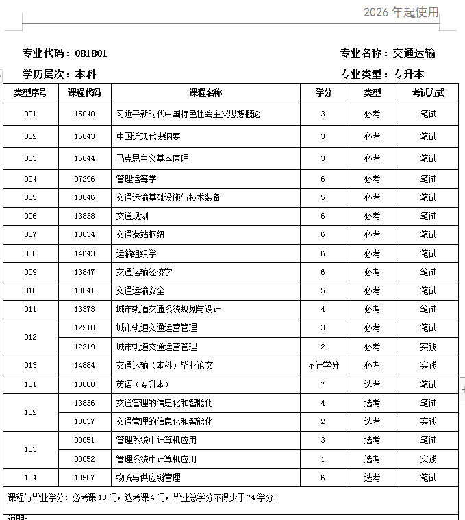 2026年起,广东自考本科交通运输专业将启用新科目表。我们一起来看看吧。