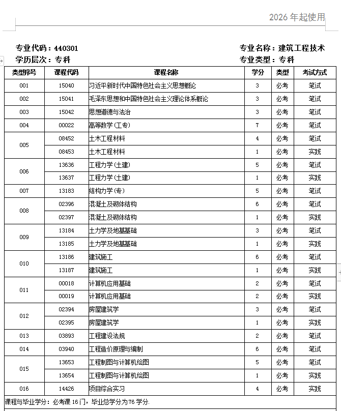 2026年起,广东自考专科建筑工程技术专业将启用新科目表。我们一起来看看吧。