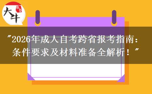 2026年成人自考,是许多工作中的人士通过自学获得学历提升的一种重要途径。对于那些需要跨省报考的考生来说,是否满足条件以及准备好所需材料是非常重要的事情。下面将针对这些问题进行全面解析,以帮助需要提升学历的同学顺利参加自考。
