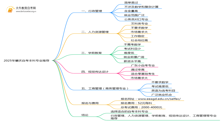 选择适合自己的自考本科专业是提升学历的重要一步。2025年肇庆自考本科的行政管理、人力资源管理、学前教育、视觉传达设计和工商管理等专业,都是相对容易通过且具有良好就业前景的选择。希望同学们能够根据自身的兴趣和职业规划,做出明智的选择。