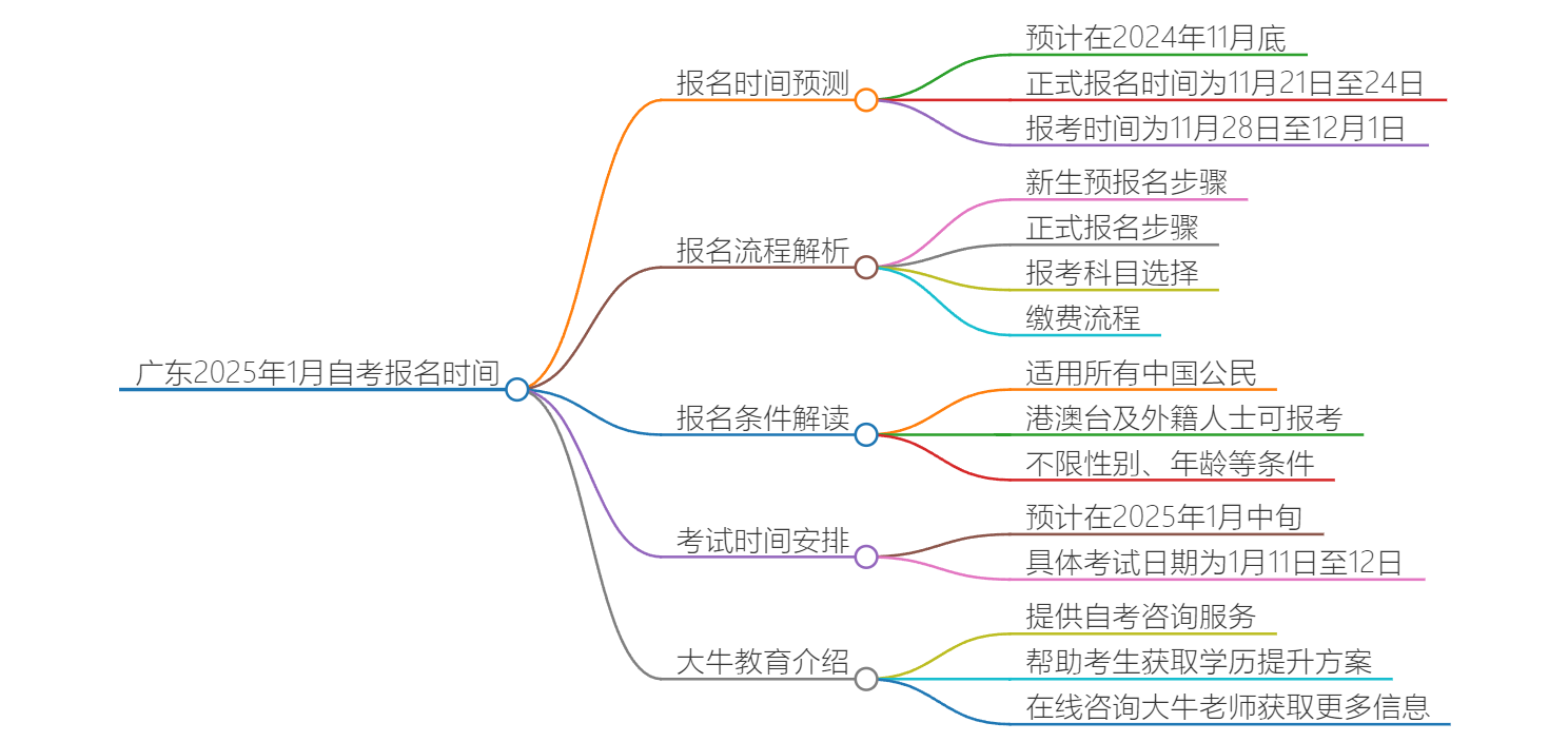 根据往年的经验,2025年1月广东自学考试的报名时间预计在2024年11月底报考。考试时间预计安排在1月中旬,年前完成考试。详细内容>