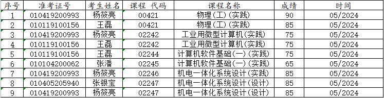 2024年春季西安理工大学自学考试本科机械设计制造及其自动化专业实践课成绩现予公示,请学生认真核对自己的姓名、准考证号码和成绩等信息。如有问题请于6月5日前,发正确信息至电子信箱:pxb@xaut.edu.cn中进行更正。
