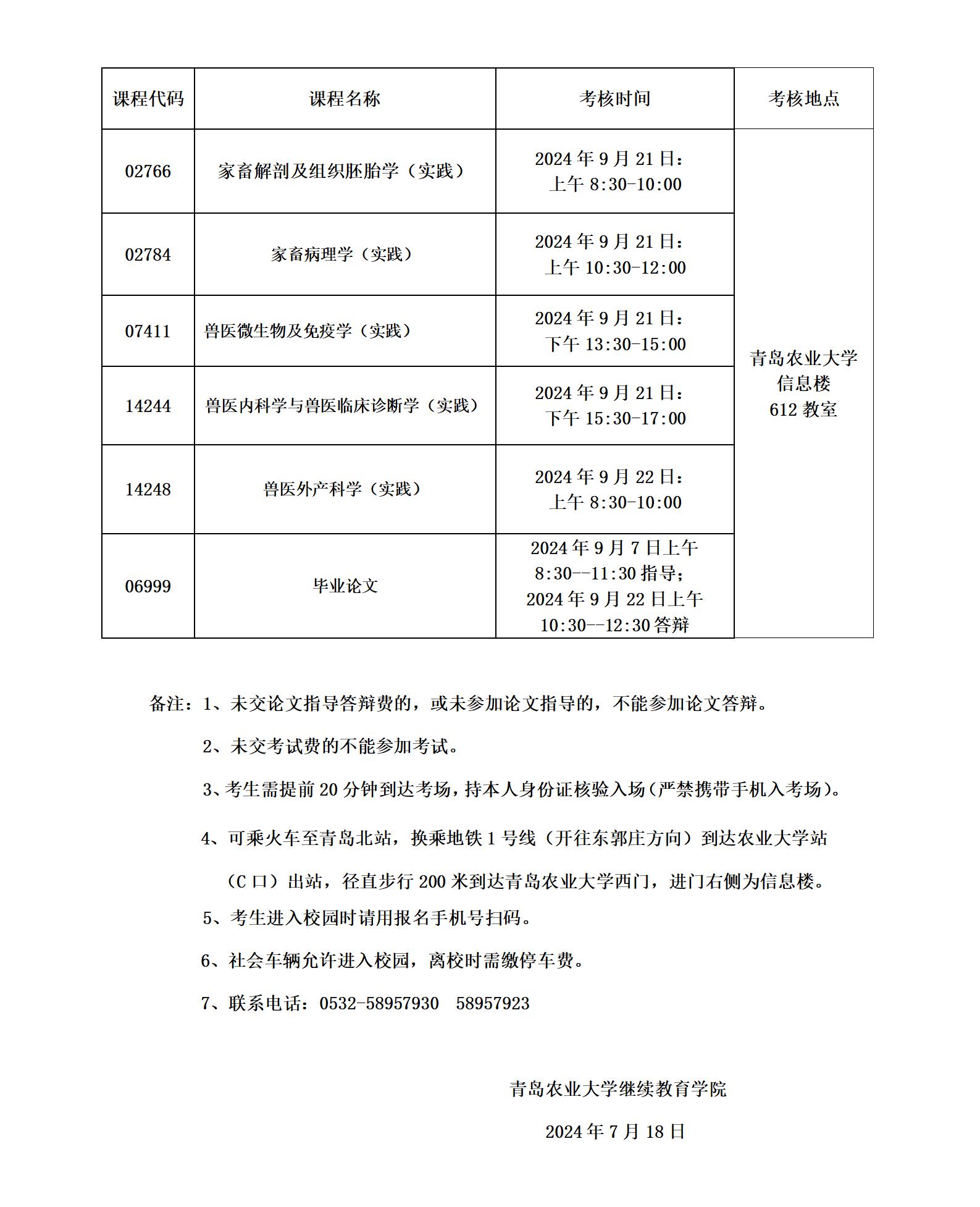 >青岛农业大学2024年下半年自考动物医学专升本毕业及实践环节考核安排