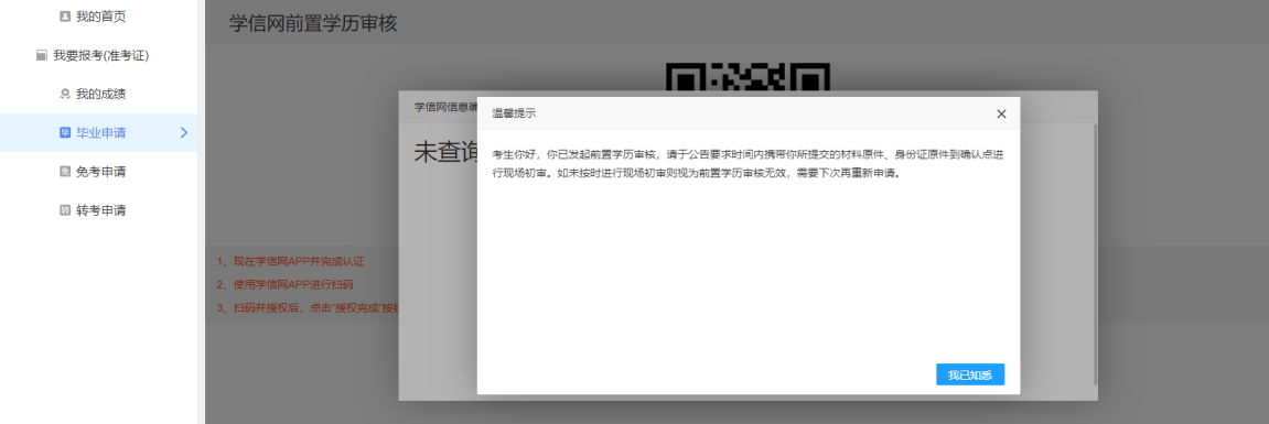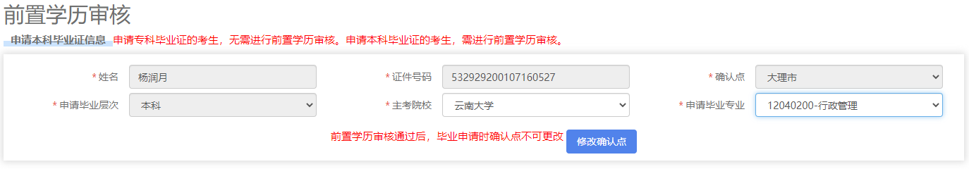 注:申请本科毕业证的考生,需进行前置学历审核。