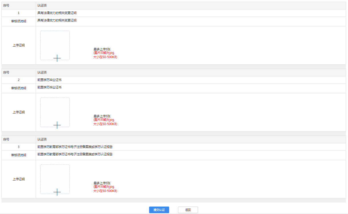 第二步:上传证明材料,根据系统提示,上传前置学历证明材料信息,如有多个学历,建议上传最高学历证明材料。