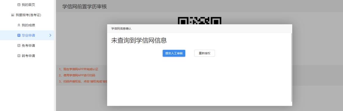 2.如未查询到学历信息,提交人工审核,进入人工审核阶段。