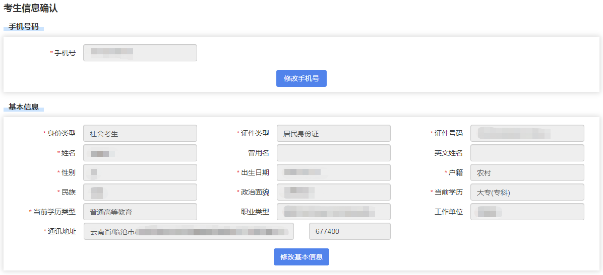 第一步:信息确认(手机号码、基本信息、确认点、专业、毕业照片的信息确认):