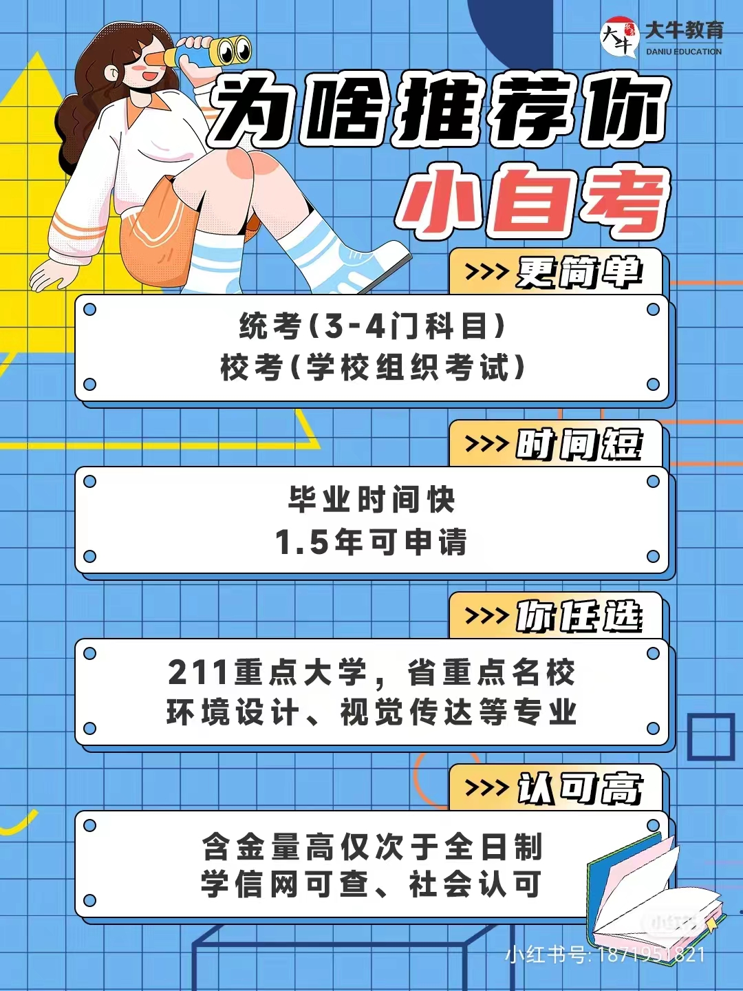 4. 适合低学历群体,小自考科目相对较少,容易通过;