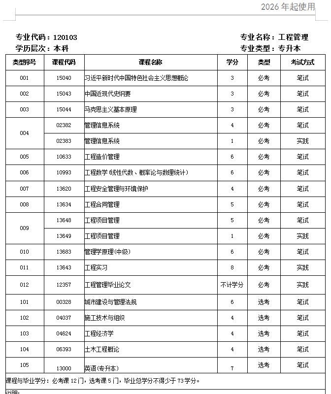 一、26年广东省工程管理自考本科科目概述